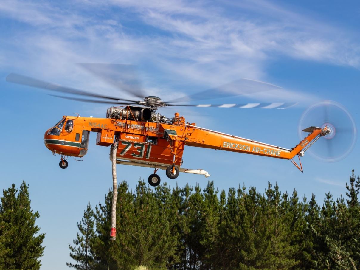 Para el combate de incendios de gran envergadura, la compañía dispondrá de dos helicópteros Aircrane, considerados como los gigantes en la extinción aérea. Con una capacidad de lanzamiento de 10 mil litros de agua por descarga, estas aeronaves ya están operativas en las regiones de Ñuble y Biobío. Su rol es fundamental para controlar y extinguir frentes de fuego de alta intensidad, ofreciendo un poder de supresión masivo y decisivo.