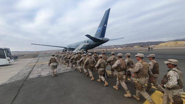 Las fotos que circulan en las redes sociales muestran el embarque del personal militar en los aviones de la FACH. Antes de su desplazamiento se les realizó un control preventivo de salud. (Roberto Sandoval Santana, corresponsal de Grupo Edefa en Chile)