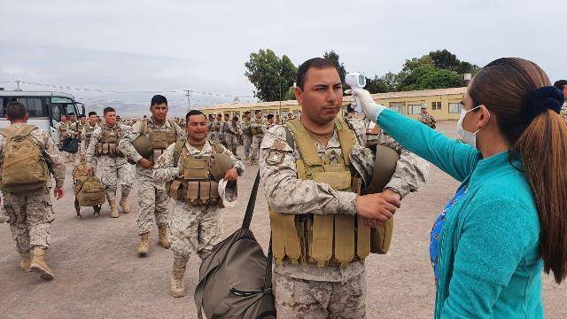 El Ejército de Chile ha movilizado sus efectivos en el marco del empleo de las Fuerzas Armadas para apoyar a la autoridad civil en el combate contra la pandemia del Coronavirus. Específicamente hablamos de personal del Batallón de Infantería Nro 7 “Esmeralda” con asiento en Antofagasta y del Regimiento Reforzado “Topater” con base en Calama, ambos pertenecientes a la Primera División de Ejército, que están siendo trasladados en medios de la Fuerza Aérea de Chile (FACH) hasta Santiago.