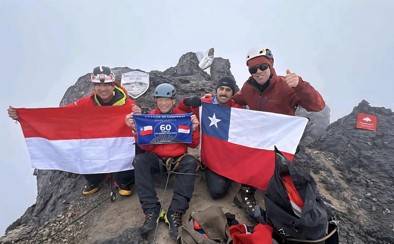 La expedición estuvo integrada por el capitán Gonzalo Villagra Cusevich, el general de Brigada Luis I. Rojas Edwards quien dirigiera la Escuela de Montaña en 2015, el subteniente en retiro Ricardo Jara Ayala y el guía civil Gabriel Becker Mardones, de la empresa Vertical. Los cuatro montañistas superaron condiciones extremas en la isla de Papúa, incluyendo glaciares en retroceso y terrenos técnicos, para plantar en la cima de 4.884 metros las banderas de Chile e Indonesia, junto a un banderín conmemorativo por el 60° aniversario de las relaciones diplomáticas entre ambos países.