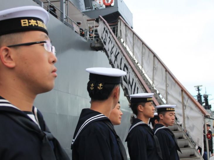 La mañana del viernes 11 de agosto recaló en el Molo de Abrigo el Escuadrón de Entrenamiento de la Fuerza Marítima de Autodefensa del Japón, comandada por el Contraalmirante Koji Manabe, que integra al Buque Escuela “Kashima” y al destructor “Harusame”. Las autoridades japonesas fueron recibidas por el Comandante en Jefe de la Primera Zona Naval, Contraalmirante Jorge Ugalde, quien estuvo acompañado por Oficiales del Estado Mayor de la Primera Zona Naval.