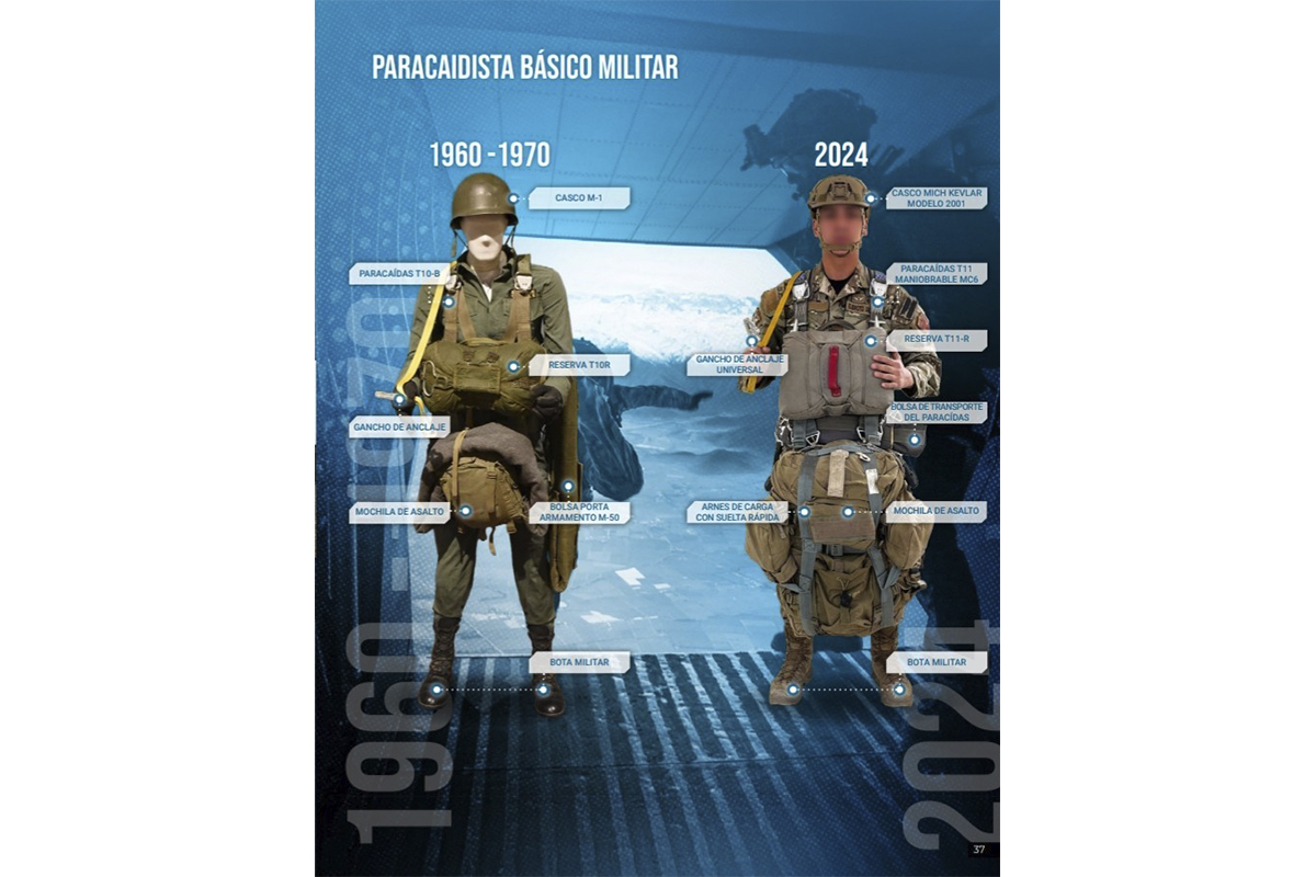 Un hito reciente en esta modernización fue la adquisición, en 2021, de los paracaídas T-11, probados durante más de 15 años por el Ejército de Estados Unidos. Este equipo, con su cúpula rediseñada y campana cuadrada, reduce la velocidad de descenso y elimina la oscilación, minimizando lesiones y aumentando la seguridad. Junto al T-11 llegó el paracaídas de reserva T-11R, más fiable que su antecesor, el T-10R, consolidando un salto cualitativo en las capacidades operativas.