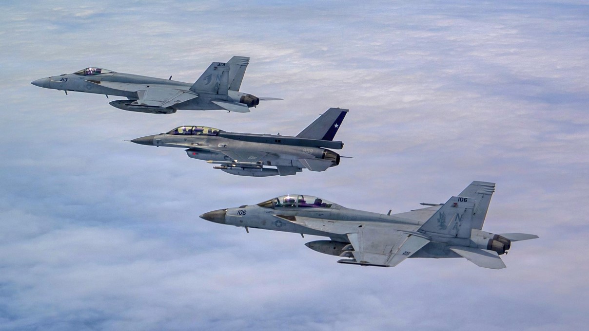 F-16/D Block 50 de la Fuerza Aérea de Chile (FACh) con F/A-18E/F Super Hornet del US Navy.