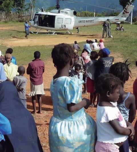 En 2004, a su llegada al Aeropuerto Internacional Toussaint Louverture de Puerto Príncipe, el primer contingente se encontró con un escenario de guerra informal. La mayoría de los adultos portaba armas o machetes y los niños caminaban descalzos exigiendo comida, mientras montones de desperdicios ardían en el fuego y el aire olía a descomposición. Ante la desconfianza inicial debieron levantar el domo del campamento a oscuras para evitar los efectos del calor y en tiempo récord, antes de que los helicópteros llegaran a los hangares en un avión Antonov comisionado para tales efectos.