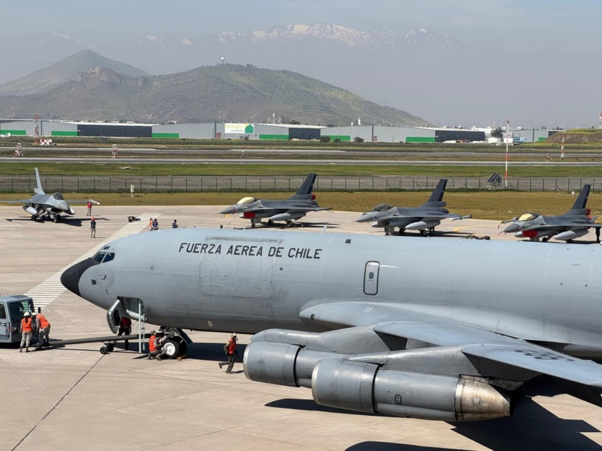 KC-135E Stratotanker junto a F-16 Fighting Falcon de la Fuerza Aérea de Chile en la losa de la IIª Brigada Aérea.