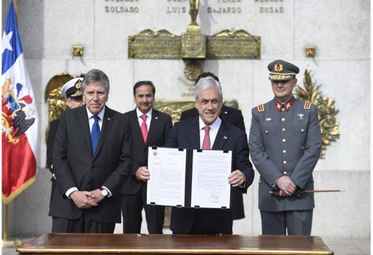 El Presidente de Chile, Sebastián Piñera, firmó esta semana un decreto para darles atribuciones a las Fuerzas Armadas para combatir el narcotráfico y crimen organizado en las fronteras del país. “Para aumentar la fuerza y la eficacia en la lucha contra el narcotráfico y el crimen organizado, vamos a firmar hoy un decreto que permite y facilita la colaboración de nuestras Fuerzas Armadas en conjunto con nuestras policías en el control de nuestras fronteras, generando las Fuerzas Armadas un apoyo a través de todos los medios con que ellos cuentan”, justificó el Mandatario en el momento del anuncio, en el marco de una ceremonia de juramento a la bandera realizada por el Ejército de Chile este martes.