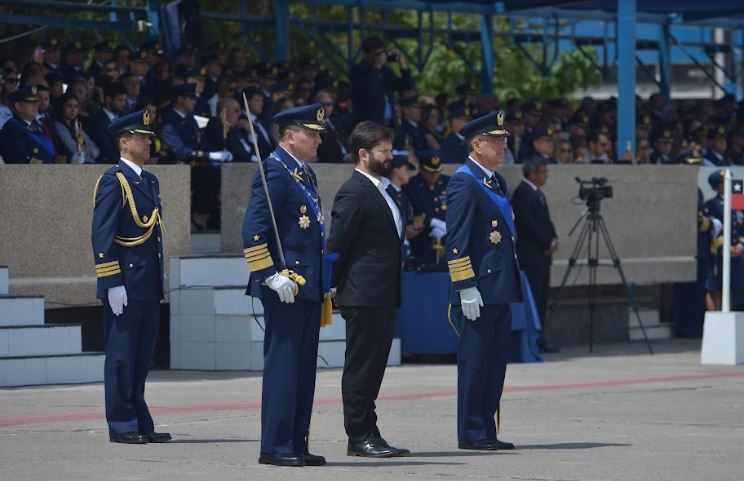 A su llegada hasta la losa de operaciones de la Base Aérea El Bosque, Boric revistó a la Unidad de Presentación junto al General del Aire Arturo Merino Núñez. La ceremonia contó con la asistencia de la Ministra de Defensa Nacional, Maya Fernández Allende, además de otras altas autoridades civiles y militares, tanto nacionales como extranjeras, entre estas últimas, se encontraban el Jefe del Estado Mayor de la Fuerza Aérea Argentina, el Comandante de la 12° Fuerza Aérea, el Comandante en Jefe de la Fuerza Aérea de Uruguay y el Comandante General de la Fuerza Aérea del Perú.
