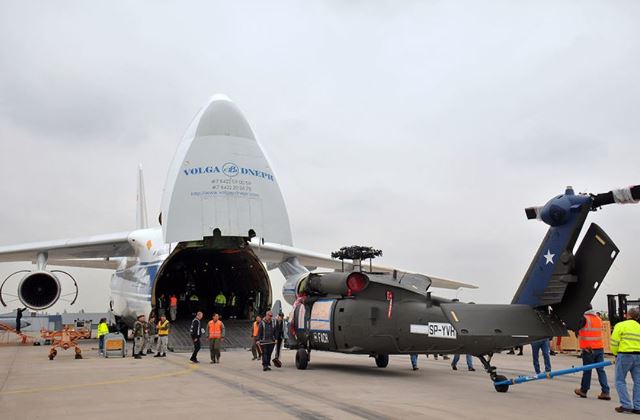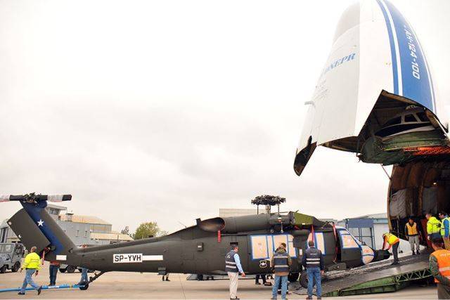 Los helicópteros fueron trasladados desde la filial de la compañía estadounidense en Polonia, PZL Mielec, en una aeronave de transporte pesado Antonov 124, la que arribó, alrededor de las 08:00 horas, al aeropuerto Comodoro Arturo Merino Benítez. El proceso de desembarque de los Black Hawk se realizó en la losa de operaciones de la Base Aérea Pudahuel, en la IIª Brigada Aérea, a cargo de un equipo especializado. Estas últimas aeronaves se unirán a la flota que arribó el pasado 23 de julio a nuestro país, lo que suma un total de siete helicópteros MH-60M Black Hawk al inventario institucional.