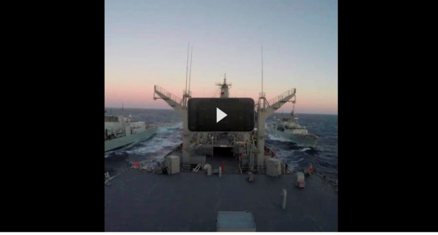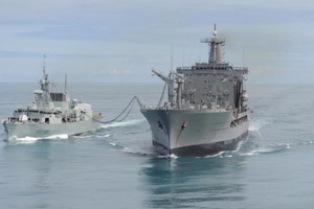 Fotografía: AO Montt efectuando RAS con una buque de la clase Halifax (Foto Armada de Chile)