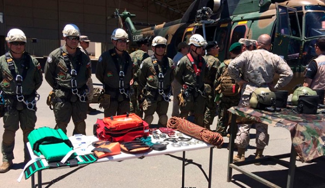 Una exposición de las capacidades militares y medios de la Brigada de Aviación del Ejército de Chile (BAVE), presenció el Ministro de Defensa Nacional, José Antonio Gómez, durante una reciente visita a la Brigada. En la ocasión se hizo especial énfasis en las capacidades de sus medios para apoyar el combate de incendios forestales, que en estas fechas cobra especial importancia en el país. En particular se realizó un ejercicio de extinción de incendios forestales, en el cual una aeronave AS-532 “Cougar” ejecutó un vuelo demostrativo con lanzamiento de agua.