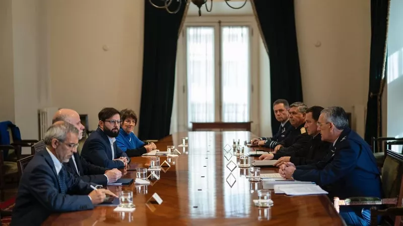 Durante la mañana de este martes, el Presidente de la República, Gabriel Boric Font, encabezó una reunión en el Palacio de La Moneda con los Comandantes en Jefe de las Fuerzas Armadas y el Jefe del Estado Mayor Conjunto. En el encuentro participaron la ministra de Defensa Nacional, Adriana Delpiano, el ministro del Interior, Álvaro Elizalde, el ministro de Seguridad Pública, Luis Cordero, el Comandante en Jefe del Ejército, general Javier Iturriaga el Comandante en Jefe de la Armada, almirante Fernando Cabrera, el Comandante en Jefe de la Fuerza Aérea, general del Aire Hugo Rodríguez y el Jefe del Estado Mayor Conjunto, general de Aviación Leonardo Romanini.