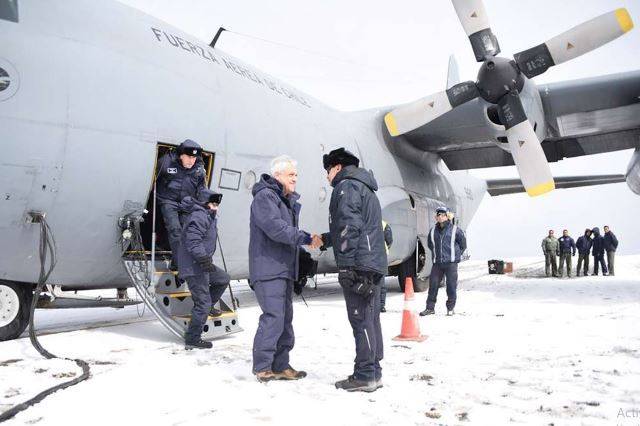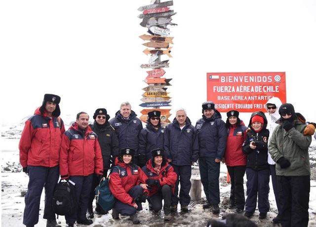 Sebastián Piñera, junto al Ministro de Defensa Nacional, Alberto Espina Otero, el Comandante en Jefe de la Fuerza Aérea de Chile, General del Aire Arturo Merino Núñez, entre otras autoridades, se trasladó en una aeronave C-130 Hércules al territorio antártico donde anunció el Plan de Modernización de la Base Aérea Antártica Presidente Eduardo Frei Montalva.