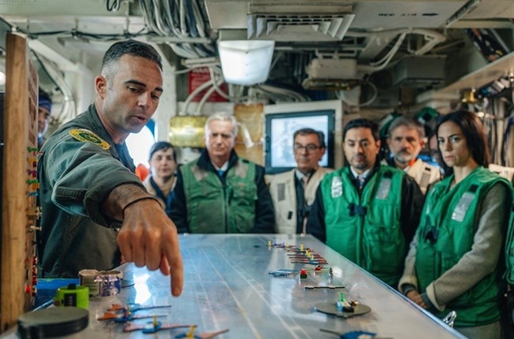 Kast junto a la comitiva en el puente de mando de la nave, donde recibió una exposición técnica sobre sus capacidades de operación, comando y despliegue.