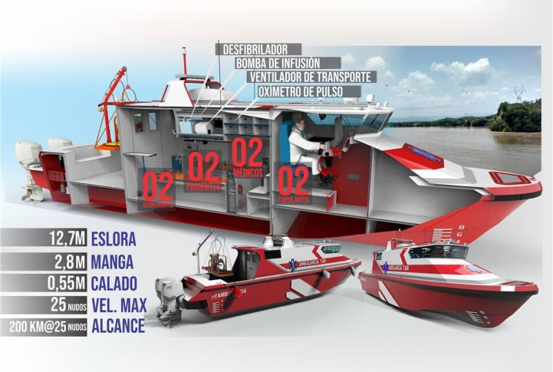 Estos esfuerzos se vuelven realidad al ser entregadas dos Lanchas de Ambulancia adquiridas por la Presidencia de la Republica de Colombia por un valor cercano a los $450.000 dólares y desarrolladas desde el diseño de las Lanchas Patrulleras de Rio LPR-40, además de tenerse los diseños de una nueva unidad medica de mayor tamaño basada en el Buque de Desembarco Anfibio BDA construido por COTECMAR y del cual la Armada de Colombia opera 6 unidades, este Buque Hospital cuenta con diferentes contenedores medicalizados que pueden ser dotados de acuerdo a la necesidades de la situación a cubrir, como pueden ser campañas de apoyo humanitario, atención en caso de desastres naturales o calamidad civil. (Carlos Vanegas, corresponsal Grupo Edefa en Colombia)