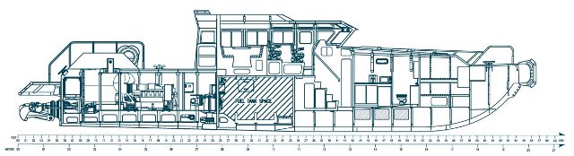 Su capacidad de alojamiento será de 8 tripulantes y hasta 24 personas a bordo, incluyendo tripulación, podrá portar 2.800 galones de combustible, 150 galones de agua potable y 50 galones de aguas negras, su sistema de propulsión estará compuesto por dos líneas, cada una conformada por un motor propulsor diésel marítimo MTU 10V2000 M96L, un reductor ZF2060 reversible y un eje de propulsión y propulsor tipo Water Jet Hamilton HM521 e integrará equipos de navegación Furuno.