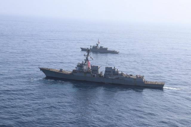 Fotografias: La fragata ARC “Antioquía” de la Armada de Colombia en un “Passing Exercise” con el destructor USS James E. Williams.