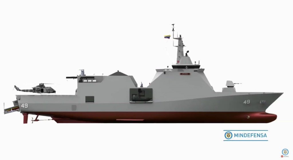 Diseño final de la patrullera oceánica OPV-93C, actualmente en construcción en el astillero colombiano COTECMAR.