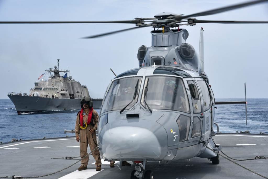 La Patrullera Oceánica OPV-80 ARC 48 "Victoria", el helicóptero AS365 N3 Dauphin ARC 251 de la Armada de Colombia y el Buque de Combate de Litoral USS "Detroit" de la Marina de los Estados Unidos se unieron a la Escuadra Japonesa desarrollando una serie de ejercicios navales que incluyeron operaciones de comunicación, maniobras tácticas avanzadas y operaciones navales, en base a los procedimientos establecidos por la OTAN, facilitando la interoperabilidad entre unidades a flote y aéreas. Esta estandarización de procedimientos permite a las fuerzas armadas contribuir de manera más efectiva a desafíos globales en seguridad y defensa. (Carlos Vanegas / Fotos: Armada de Colombia)