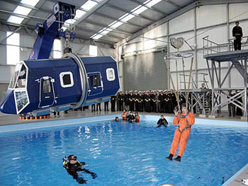El tamaño de la piscina fue propuesto por la firma Bell Helicopter, que estableció unas dimensiones mínimas requeridas para el entrenamiento de los alumnos, permitiendo la realización de diferentes ejercicios, así como el entrenamiento rutinario de nadadores de rescate. En el espacio dispuesto se propuso un complejo con dimensión 21 mts x30mts y una piscina con dimensiones efectivas de 10 x 11.60m, con profundidad variable de 1.2 mts a 4.5 mts.