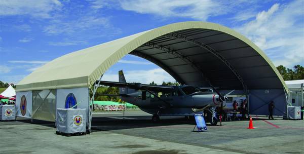 También se ofrece al sector aeronáutico un nuevo desarrollo de “carpas tipo hangar”, con características modulares, para ser adecuadas al tamaño de las aeronaves, además de contar con un sistema de ruedas que las hacen móviles, siendo posible cubrir la aeronave una vez esta se encuentre en su ubicación final, evitándose posibles accidentes durante el estacionamiento de esta, siendo en estos momentos este diseño utilizado por la Fuerza Aérea y el Ejercito de Colombia, además de haberse comercializado en la Fuerza Aérea del Ecuador.
