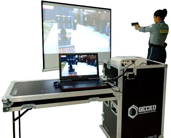 Además, el entrenamiento se desarrolla con un arma adaptada (no letal), la cual posee características físicas iguales a la real y garantiza un alto estándar operacional en un entorno controlado, seguro y de bajo costo, con el ahorro de munición que esto conlleva. De igual forma, se pueden realizar ejercicios de tiro con diferentes armas, escenarios y siluetas de tiro empleadas para entrenar, capacitar y certificar guardas de seguridad.