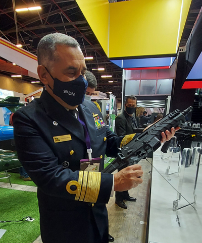 Foto: Alto oficial naval Brasilero probando la subametralladora 9 mm de Indumil