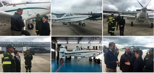 La ceremonia de entrega de los AT 802 Air Tractor se llevó a cabo en la sede del Área de Aviación de la Policía Nacional en Guaymaral, Cundinamarca, contó con la presencia del Ministro de Defensa Nacional Luis Carlos Villegas, el Director de la UNGRD, Carlos Iván Márquez Pérez, el general Jorge Hernando Nieto, director de la Policía Nacional y Kevin Whitaker, embajador de los Estados Unidos en Colombia.