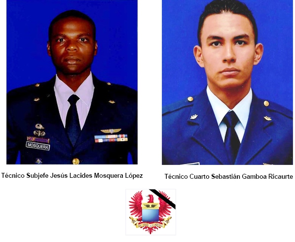 “La Fuerza Aérea Colombiana lamenta profundamente la pérdida de dos valientes hombres pertenecientes a la especialidad de Seguridad y Defensa de Bases Aéreas, integrantes de los Comandos Especiales Aéreos del Comando Aéreo de Combate No. 5 de Rionegro, Antioquia, quienes fallecieron en un accidente ocurrido sobre la cabecera de la pista del aeropuerto Olaya Herrera de la ciudad de Medellín. Los motivos de este doloroso accidente se encuentran en investigación por parte de la Institución. Los suboficiales Técnico Subjefe Jesús Lacides Mosquera López (Q.E.P.D.) y Técnico Cuarto Gamboa Ricaurte Sebastián (Q.E.P.D.) finalizaban la demostración aérea con motivo de la Feria de las Flores.