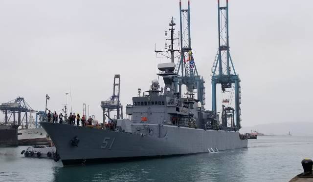 Fotografía: Fragata Misilera FM-51ARC Almirante Padilla atraca en el muelle de El Callao en Perú,
