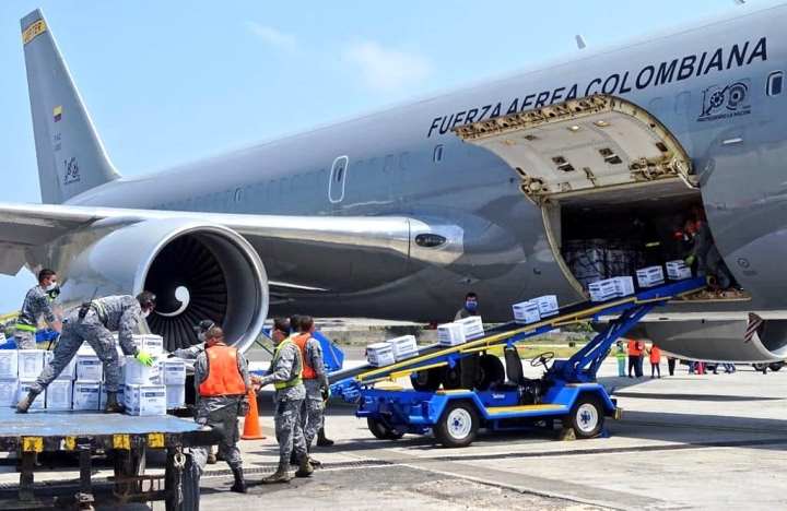 Además, la Fuerza Aérea de Colombia, en apoyo a las medidas adoptadas por el gobierno en la lucha contra el covid-19, ha transportado a la fecha 266.6 toneladas: 168,8 tn en alimentos, 51,6 tn en insumos médicos, 6,6 tn en vehículos de emergencia y 39,6 tn en otro tipo de cargas, en esta labor de transporte incluso ha participado el avión presidencial FAC 0001 Boeing 737-700, adaptado para cumplir con estas misiones. (Carlos Vanegas, corresponsal Grupo Edefa en Colombia)