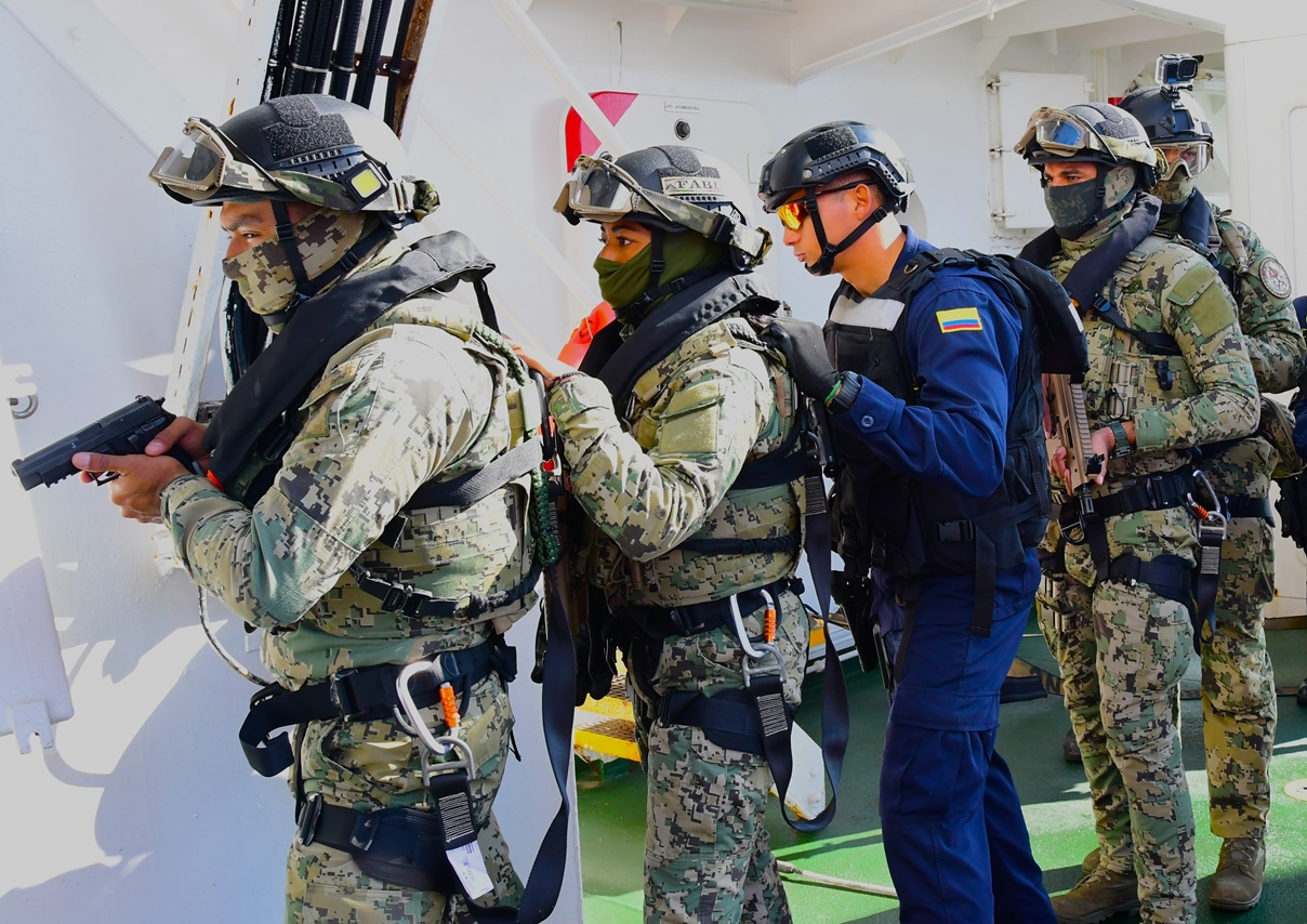 En este ejercicio, tanto los infantes de marina mexicanos como el personal de Guardacostas de la ARC ingresaron al puente de mando y a uno de los compartimentos de carga del HSM Protector, simulando la búsqueda y captura de personal sospechoso de actividades ilícitas.
