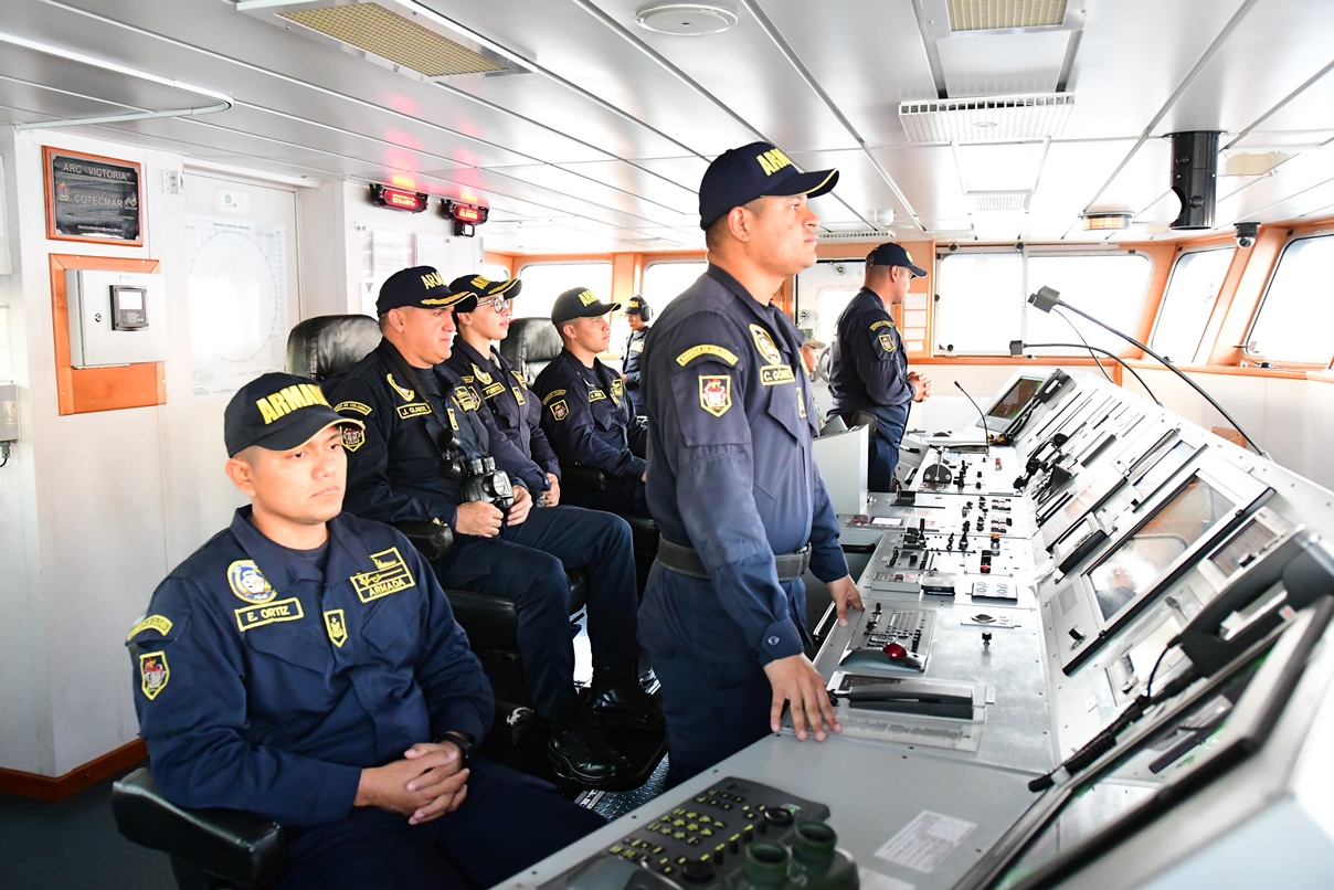 De manera simultánea al ejerció de “Búsqueda e Incautación Abordo”, el ARC Victoria de la Armada de Colombia inició, a las 11:00 Q, su integración en una formación táctica de toda la fuerza de tarea multinacional de UNITAS 2024, en donde se pone a prueba la capacidad de maniobra, comunicaciones y sincronización de las tripulaciones, para lograr de forma precisa un posicionamiento de las unidades de superficie, submarinas y aérea en el mar, y con ello el fortalecimiento de la interoperabilidad necesaria para la conformación de las fuerzas aliadas.