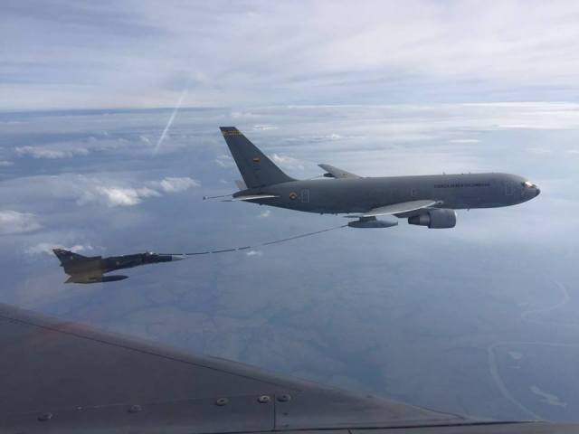 El Boeing KC 767 MMTT “Júpiter” se encargó de los ejercicios de reabastecimiento en vuelo (Refuelling) de las aeronaves de la Fuerza Aérea. La nación cuenta con esta capacidad desde los años 90, con el emblemático Boeing KC707 “Zeus”, que fue retirado el año pasado al llegar al fin de su vida activa. Ambos aviones fueron comprados en el mercado civil y adaptados con sistemas de retanqueo en Israel.