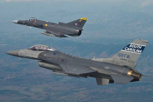 Aviones cazabombarderos Kfir del Escuadrón 111 de la Fuerza Aérea Colombiana y aeronaves F-16 y KC-135 de la Guardia Nacional de Carolina del Sur, Estados Unidos , están llevando a cabo, del 11 y 17 de julio, ejercicios de combate aéreo que permitirán practicar y mejorar las diferentes tácticas, técnicas y procedimientos de combate aire-aire de los pilotos colombianos de cara a su participación en Red Flag 2018.