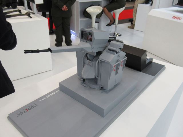 El cañón de 20 mm. de Nexter se presenta en varias aplicaciones, incluyendo el montaje P20 diseñado para instalarse fácilmente en vehículos ligeros mediante un trípode, como vimos en la última edición de Eurosatory, la torre de empleo naval NARWHAL, el pod NC621 para aeronaves y el SH20, para montaje en el interior de helicópteros.