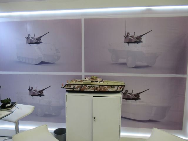 Una maqueta de la torre configurada con un cañón de 25 mm. se presenta en su stand, sistema de armas que ha sido integrado en gran número de plataformas, incluyendo los blindados 4x4 Textron en servicio en el Ejército Nacional de Colombia. Se trata por tanto de una integración factible que dotaría principalmente a las unidades de Caballería de un importante argumento pero que también podría ser adoptado por plataformas empleadas por la infantería como los eternos M-113 o un hipotético 8x8 como el que ha sido evaluado por el Ejército de Colombia.