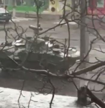 Vehículos de combate de infantería aerotransportado BMD-2 rusos por las calles de Jersón