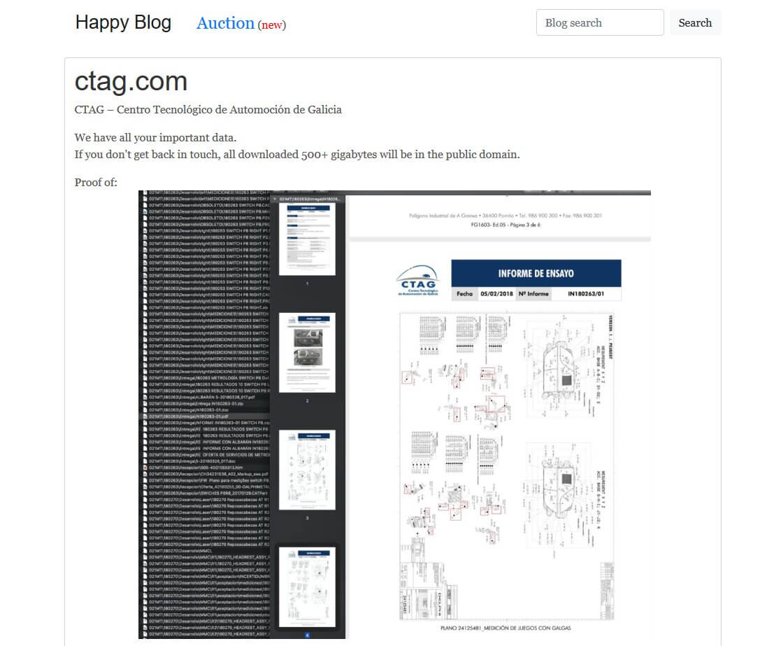 El 18 de diciembre por la mañana, la reacción de los extorsionadores al no recibir respuesta alguna, fue remitir imágenes que representaban elementos de la infraestructura informática del CTAG e incluso documentos relacionados con una pieza Delphi de una versión diseñada para Peugeot en 2018.