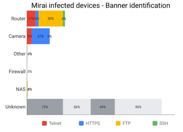 De los dispositivos conocidos afectados por Mirai en el ciberataque Dyn de 2016, la mayoría eran enrutadores: