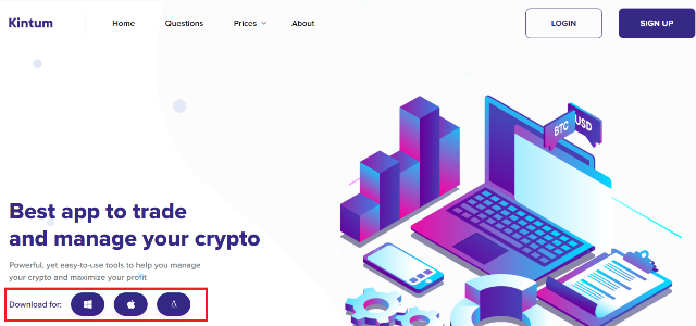 Figura 1: Página de inicio de "Kintum" que aloja los troyanos Windows, Linux y MacOS de eTrade