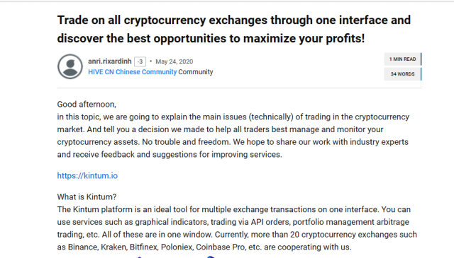 Figura 4: El usuario "anri.rixardinh" publica en un foro de Chinese Hive en PeakD promocionando la aplicación "eTrade"