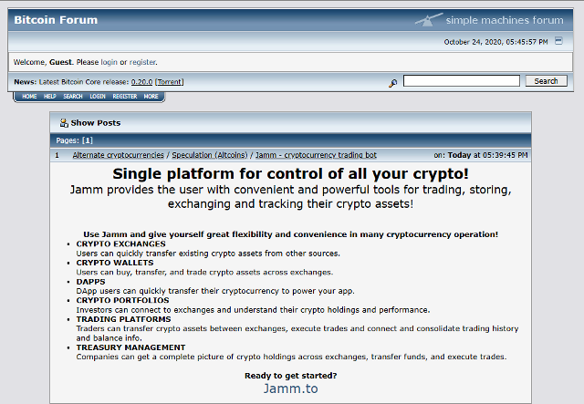 Figura 5: Aplicación "Jamm" promocionada en el foro de bitcointalk
