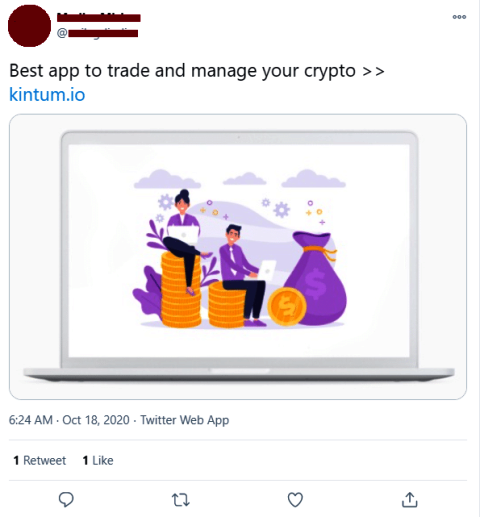 Figura 7: eTrade (Kintum) promocionado a través de un anunciante de redes sociales en Twitter