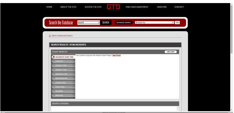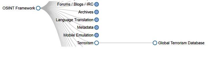 Es importante mencionar que esta página web, OSINT Framework, también posee un apartado sobre terrorismo en el cual existe una base de datos a nivel mundial que guarda información de todos los atentados y ataques terroristas ocurridos hasta la fecha: