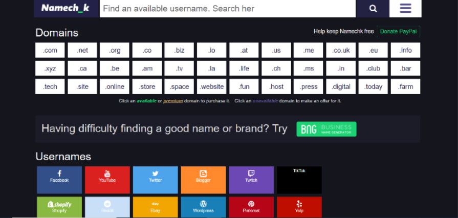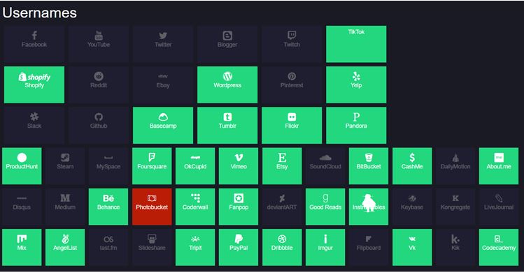 Vamos a probar la primera aplicación que me ofrece el árbol de información, Namechk: