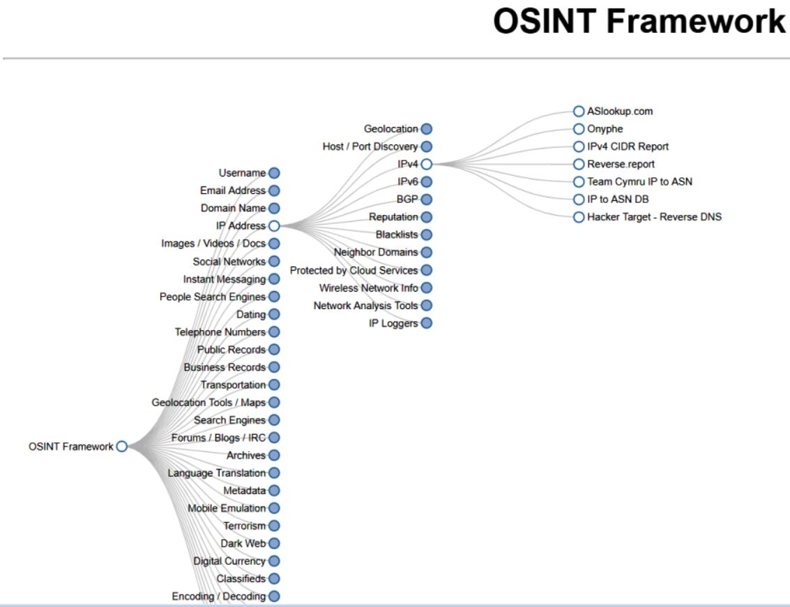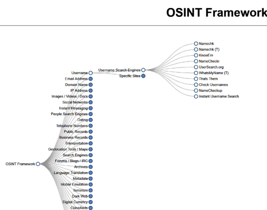Una de las herramientas OSINT más útiles que existen es la página web de https://osintframework.com/