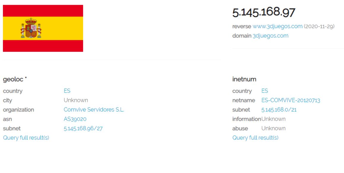 Y como podemos ver a continuación la dirección IP introducida se geolocaliza en Madrid: