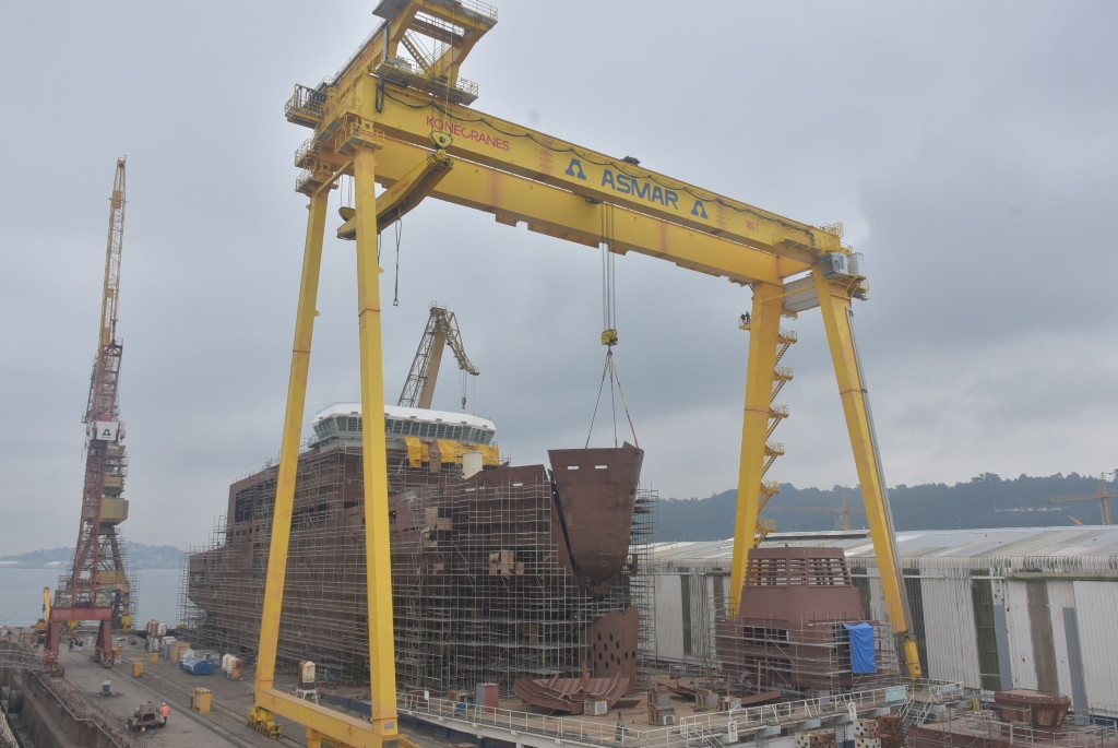 Otro desafío importante fue la ‘winterización’ del buque, que demanda el acondicionamiento de numerosos sistemas, como la necesidad de calefaccionar los estanques y de proteger todo el equipamiento expuesto a los efectos del clima antártico. Por último, el proyecto impulsó un importante incremento en el grado de integración en los bloques, antes de su puesta en grada.