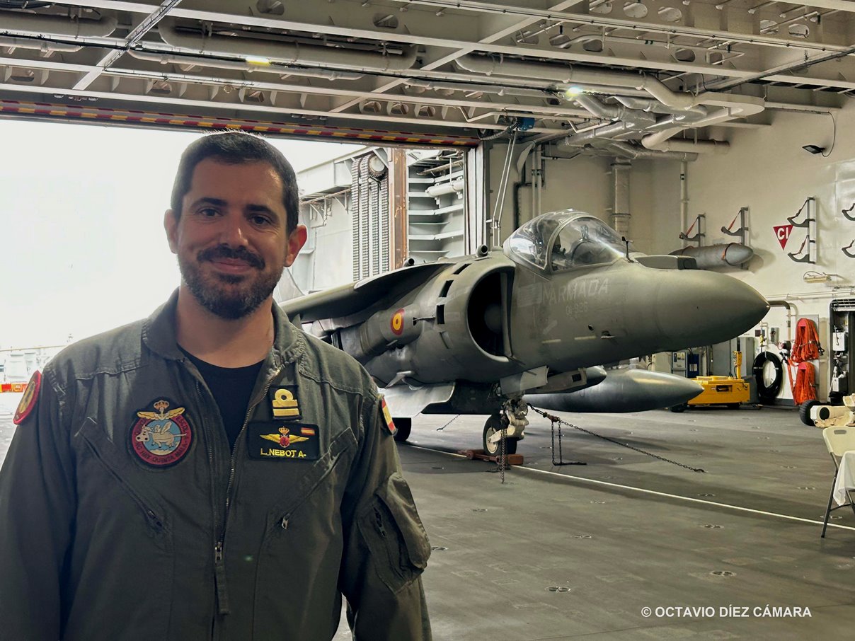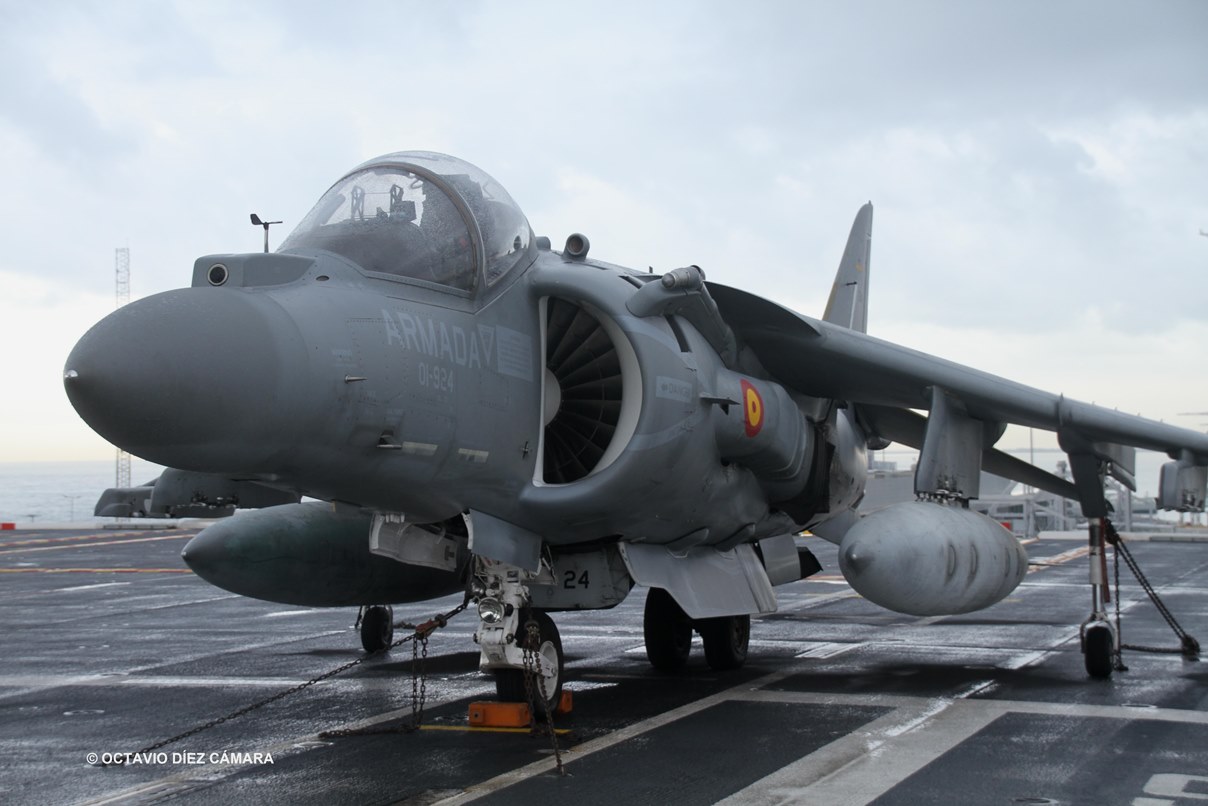 Hablando de los aviones de combate AV-8B, y su posible reemplazo con los F-35B, que son la única solución técnica actual que permite sustituir su empleo en plataformas como el portaaviones español, el contralmirante González-Tánago señaló que “el Harrier es un aparato que nos ha dado magníficos resultados. En la Armada siempre lo hemos tenido perfectamente actualizado como consecuencia de nuestra participación en el programa de Harrier y la verdad que sigue dando un resultado extraordinario. De momento no le puedo decir nada sobre su posible sustitución porque es un proceso que no depende de mí competencia y no se ha iniciado.” (Octavio Díez Cámara)