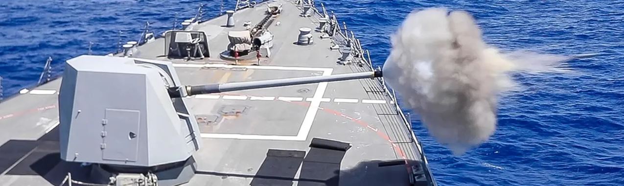 Pieza Mk 45 instalada en el destructor de Estados Unidos USS “John Finn”. (foto US Navy)